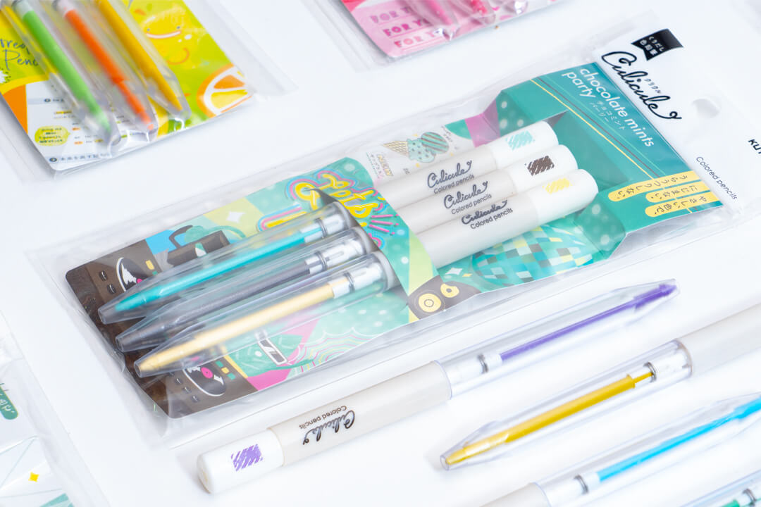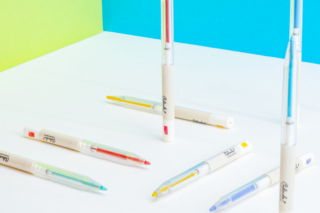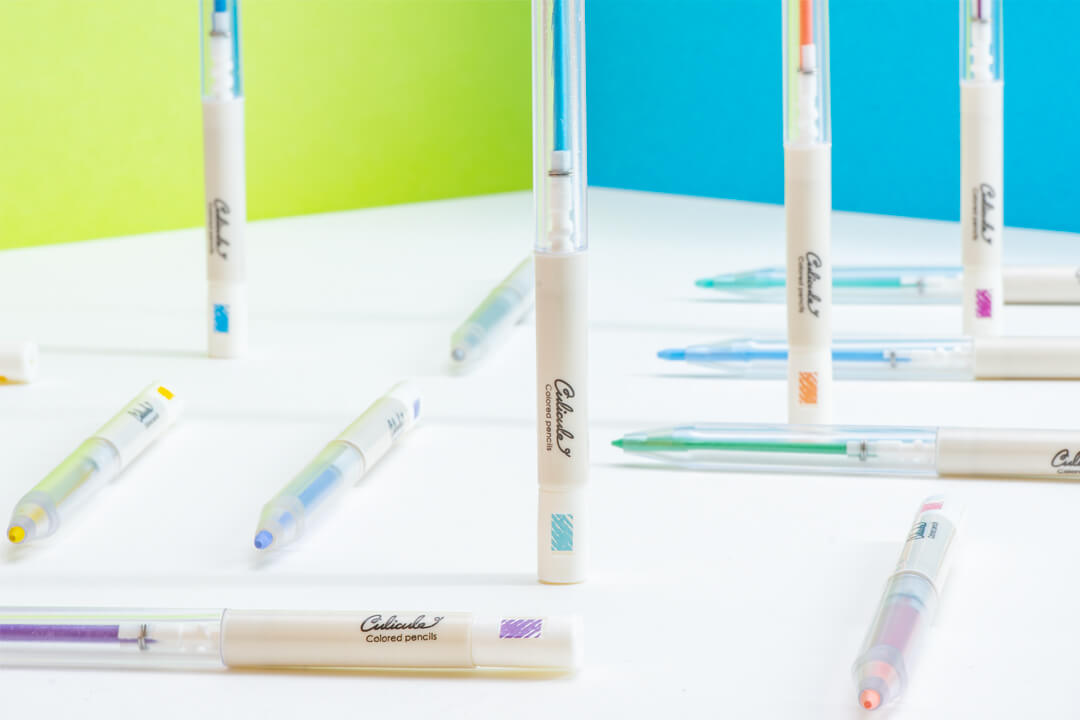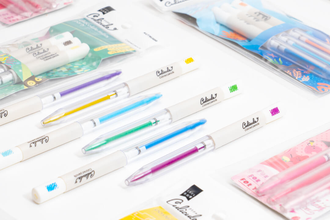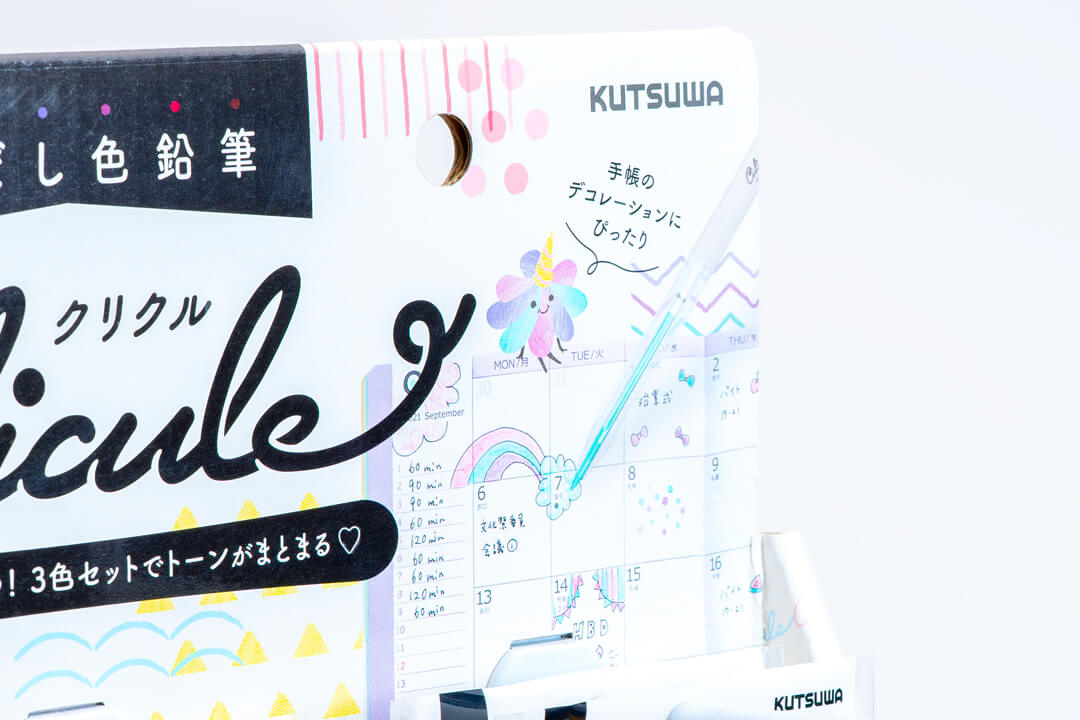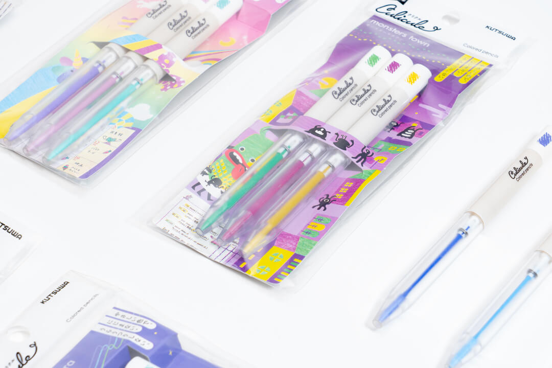 くりだし式の色鉛筆が3色でセットとなった商品「くりだし色鉛筆クリクル」のロゴと、パッケージデザインを担当しました。テーマに合わせた3色セットなので、自然とカラートーンがまとまり、手帳やノートのまとめに最適です。